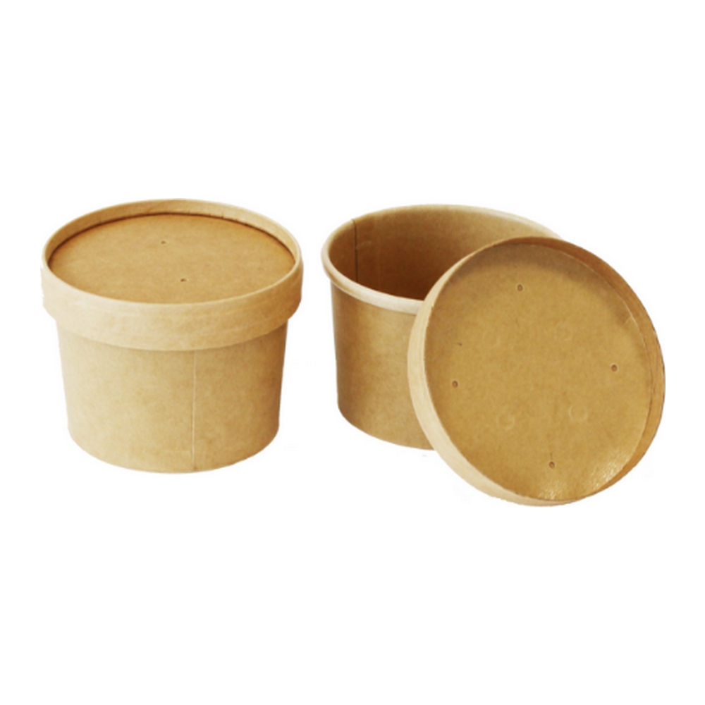 Kies voor een natuurlijke presentatie met deze stevige kartonnen soepkommen met deksel.