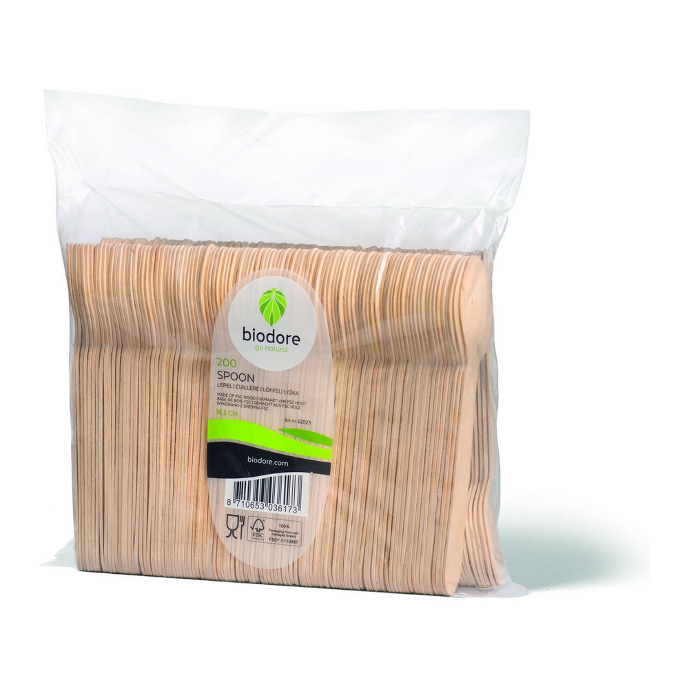 Serveer je verse gerechten eens met het handige houten bestek van Biodore. Deze mooi gevormde houten lepels liggen stevig in de hand en zijn een aanwinst bij foodtruckfestivals, evenementen en braderieën, op campings en bij picknicks, barbecues of tuinfeesten. Leg het accent op natuurlijk genieten, proeven en beleven en je bent altijd verzekerd van een verzorgde presentatie.