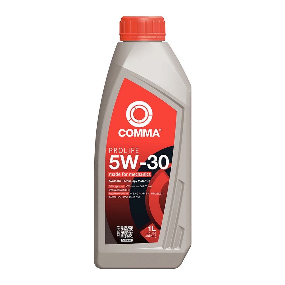 De motorolie Comma Prolife 5W-30 1 liter is een MID SAPS-motorolie (volsynthetisch) voor de moderne diesel- en benzinemotoren van Audi en Volkswagen, ook deze met verlengde service-intervallen. Deze motorolie staat garant voor een goede smering en beschermt het uitlaatgasnabehandelingssysteem. Deze motorolie bevat onder meer 0,10% zink en 0,17% calcium. Met 230 °C heeft het een hoog vlampunt.