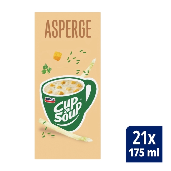 Even lekker opladen voordat u weer aan het werk gaat? Bestel dan nu uw portiezakjes Cup-a-Soup Asperge! Er gaat niks boven een heerblijk bakje soep om even bij te komen. Zo bent u snel weer opgeladen en kunt u er weer keihard tegenaan! Cup-a-Soup is gemaakt van de beste ingrediënten en is op een duurzame manier gemaakt. Één doos bevat maarliefst 21 portiezakjes! Beetje water toevoegen en u heeft een heerlijk bakje soep! Kunt u binnen no-time weer verder!