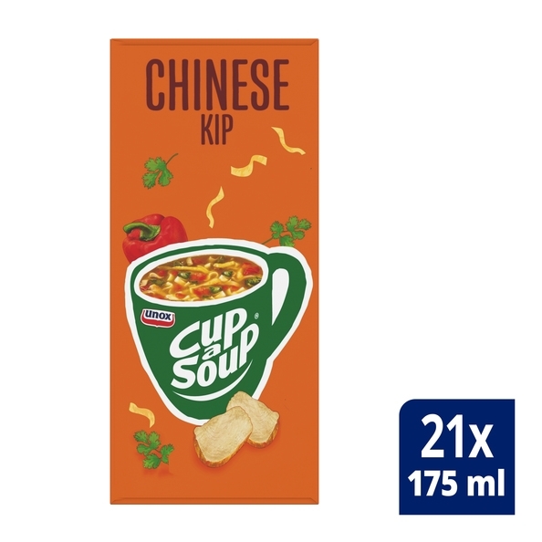 Bestel u doos Cup-a-Soup Chinese kip gewoon online! Geniet van een heerlijk tussendoortje met een kopje soep. De soepen van Cup-a-Soup zijn gemaakt op een duurzame manier en met de beste producten. Laadt uzelf op in no-time! Zo kunt u er weer met volle moed tegen aan! Het enige wat u hoeft te doen is de inhoud van een zakje in een mok te strooien, kokend water toe te voegen en even te roeren. En klaar is Kees, of Jan, of wie er ook mee bezig is.